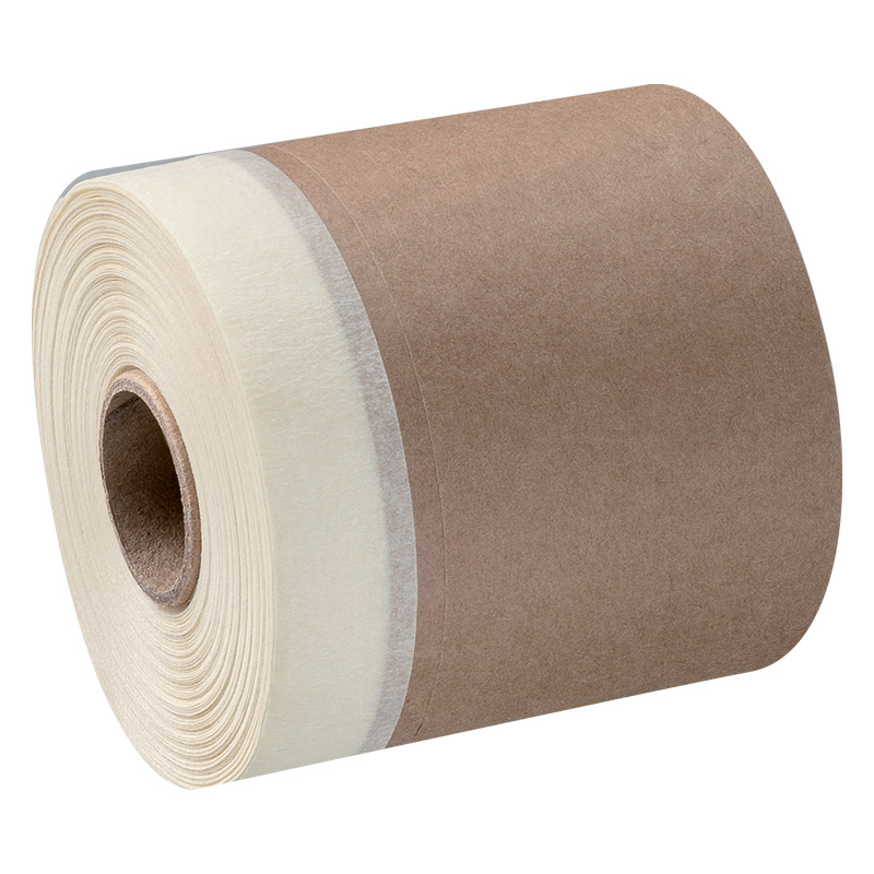 Kombi Mask con nastro carta di colore beige, liscio a media adesività e gomma naturale, ideale per mascherature fino a 7 giorni in interni. Perfetto su superfici lisce, copre e protegge in un solo passaggio. Rotolo 100 mm x 20 m.